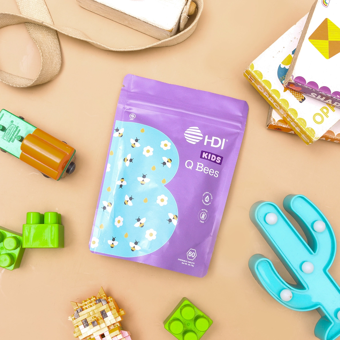 Anak-Anak jadi lebih pintar dan ceria dengan Q Bees, tablet kunyah rasa madu dengan bahan aktif alami, siap mendukung pertumbuhan dan perkembangan otak buah hati.