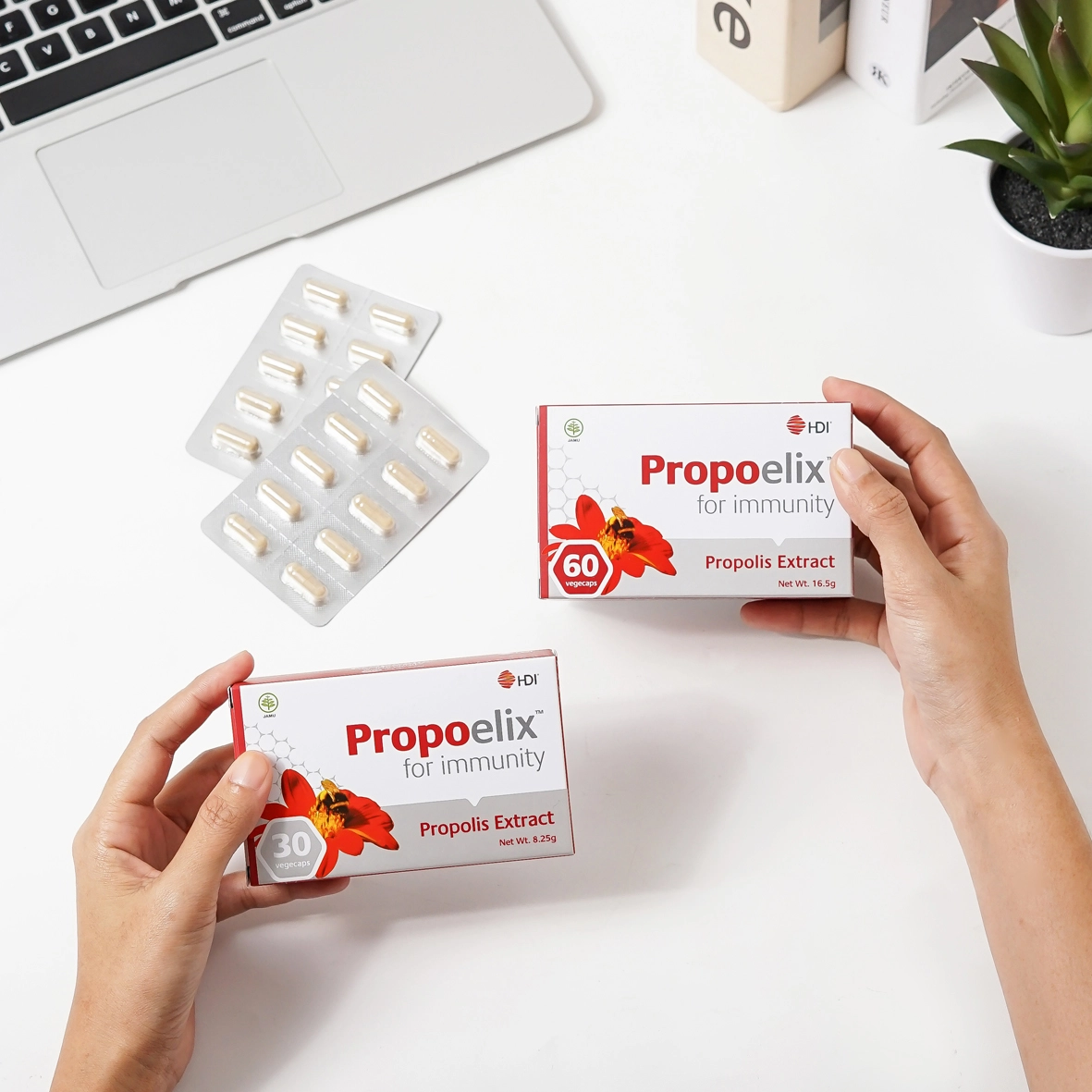 Propoelix™ adalah ekstrak propolis eksklusif milik HDI yang telah teruji secara klinis dan kaya antioksidan kuat untuk bantu jaga daya tahan tubuh dan kesehatan menyeluruh.